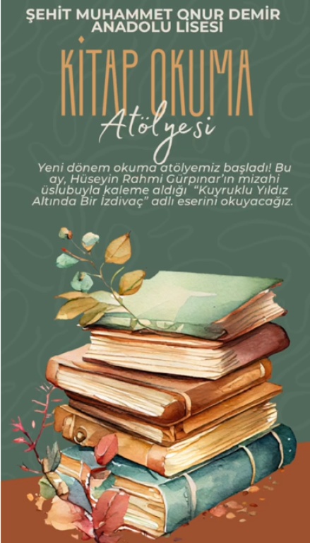 Okulumuzda yürütülen Okuma Atölyesi etkinliği kapsamında, Ekim ayının kitabı olarak Hüseyin Rahmi Gürpınar’ın “Kuyruklu Yıldız Altında Bir İzdivaç” adlı eseri belirlendi.