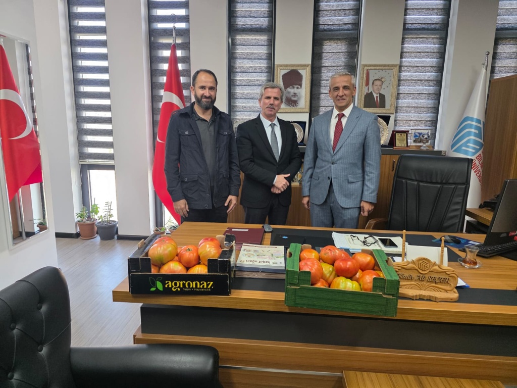 Okulumuzda yürütülen TÜBİTAK 4004 Ata Tohumu Domates Ekimi Projesi kapsamında; Sivas Bilim ve Teknoloji Üniversitesi Genel Sekreteri Kadir Ali Şeker, Müdür Yardımcımız Cemil Uzun ve Proje Sorumlumuz Edebiyat Öğretmeni Yasin Temuz, Genel Sekreterimizi makamında ziyaret ettiler.